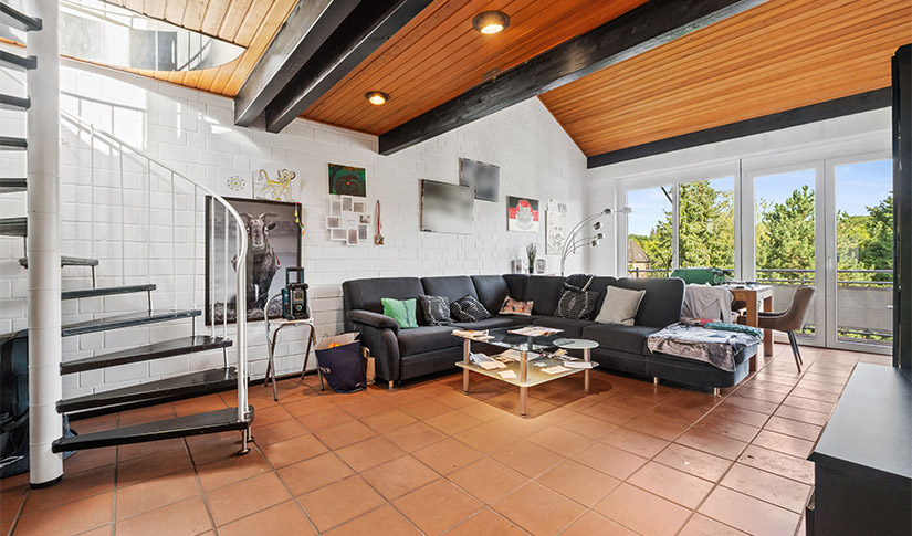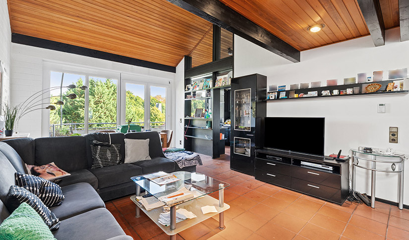 Im Erdgeschoss der Wohnung wurde Fliesenboden verlegt, der sich bis auf das Badezimmer, durch alle Räume zieht.